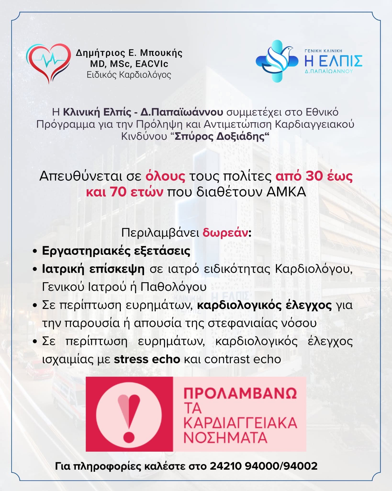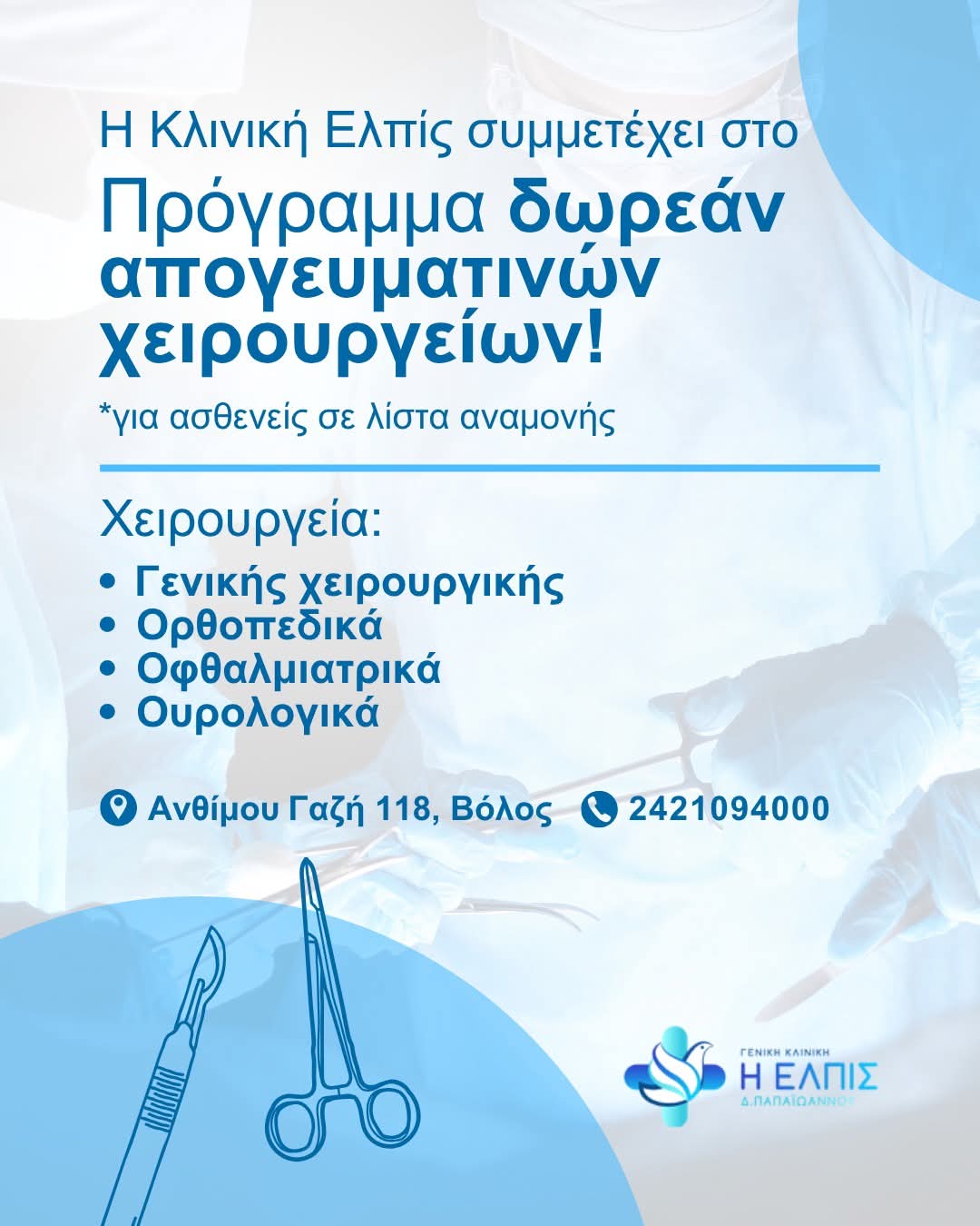 Ενημερωθείτε για τα νέα της Κλινικής Ελπίς καθώς και για προγράμματα προλιπτικού ελέγχου σε συνεργασία με το υπουργέιο Υγείας.